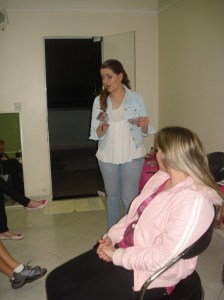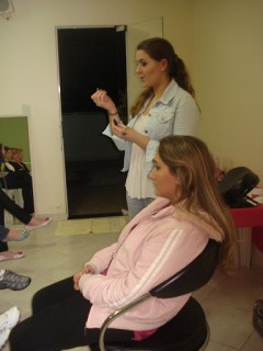 O curso foi realizado da seguinte maneira, primeiramente foi feita uma mini palestra com dicas de maquiagem tanto para o dia-a-dia e quanto para à noite. Em seguida, as alunas presentes tentaram colocar em prática as dicas que foram dadas. Devo falar que, primeiramente as alunas estavam tímidas em fazer nelas mesmas as maquiagens, entretanto, depois todas se empolgaram a fazer, e com isso outras dúvidas foram sendo tiradas.